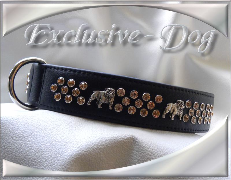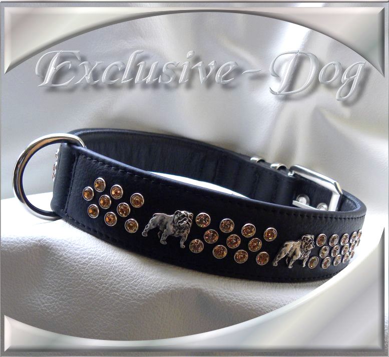 Englische Bulldogge Lederhalsband Hunde Luxus Strass Halsband für English Bulldog " Strong " by Exclusive-Dog