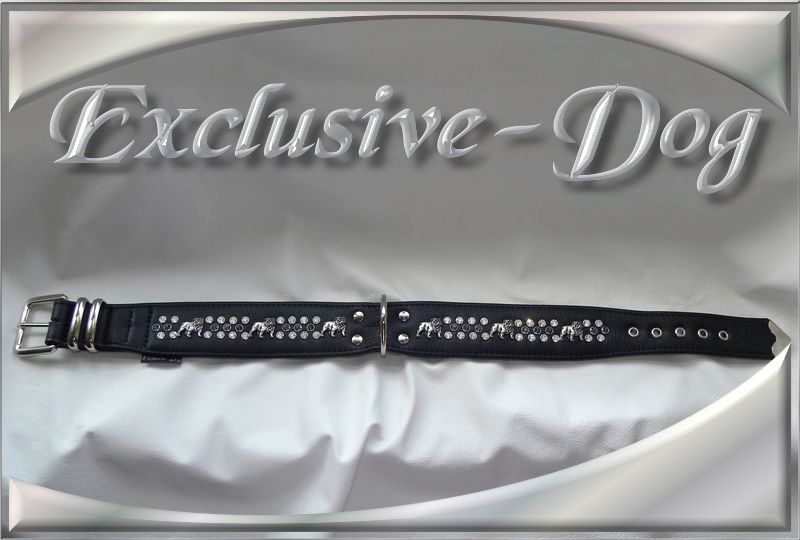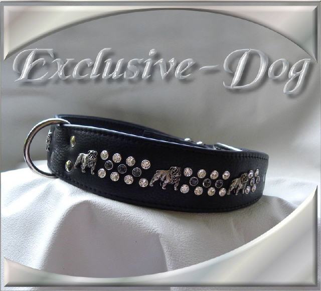 Englische Bulldogge Lederhalsband Nietenhalsband Bulldogge mit SWAROVSKI ELEMENTS Hundehalsband Strasshalsband