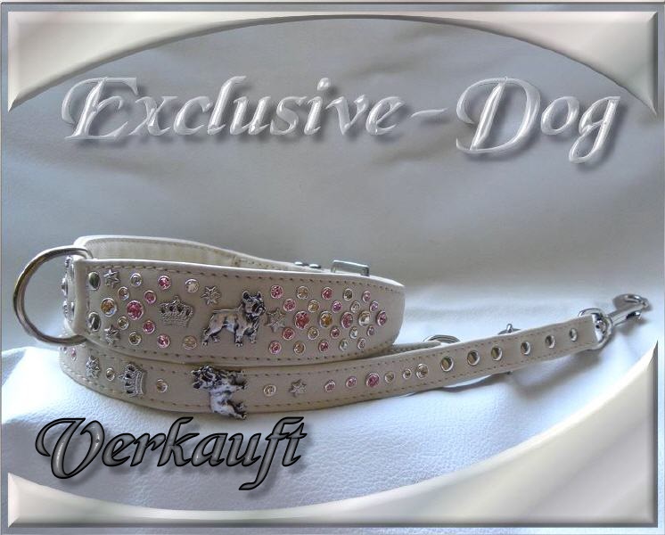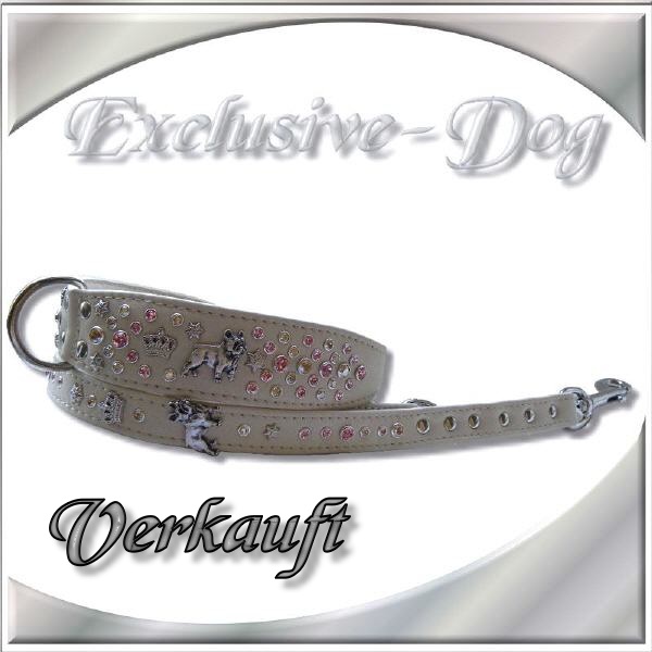 Halsband Leinen Set für die Französische Bulldogge French Bully Leder Strass Halsband " Lordly " mit SWAROVSKI ELEMENTS