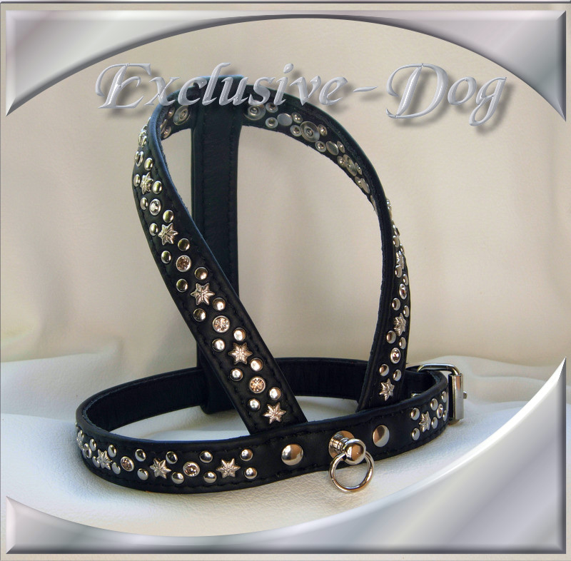 Unser Brustgeschirr " Rocky " wurde aus weichem schwarzem Nappaleder hergestellt,