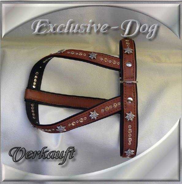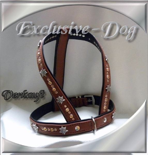 Brustgeschirr Leder-Strass-Hunde-Geschirr mit SWAROVSKI ELEMENTS verziert