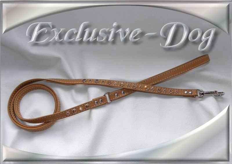 Chihuahua Strass Lederleine mit SWAROVSKI ELEMENTS Prager Rattler mini Leine mit Strass