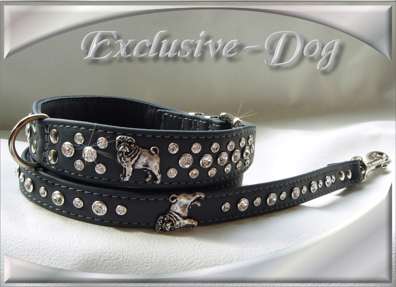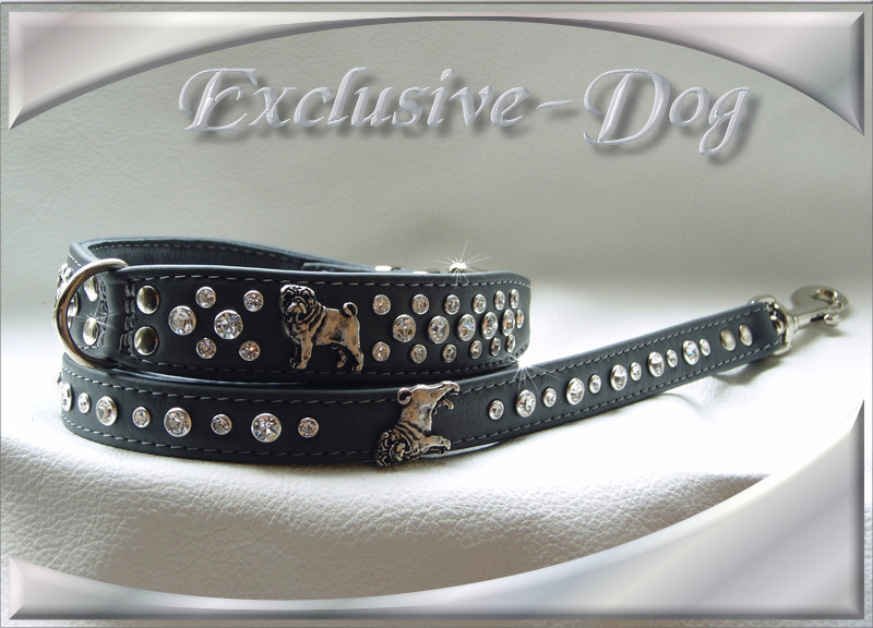 Mops Halsband / Leinen Set " Clear " Klassisch, edel & schick