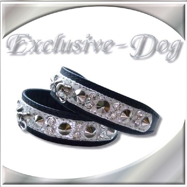 XS Chihuahua Yorkshire-Terrier Strasshalsband Strass Lederhalsband mit SWAROVSKI ELEMENTS silber print Schlangen Design