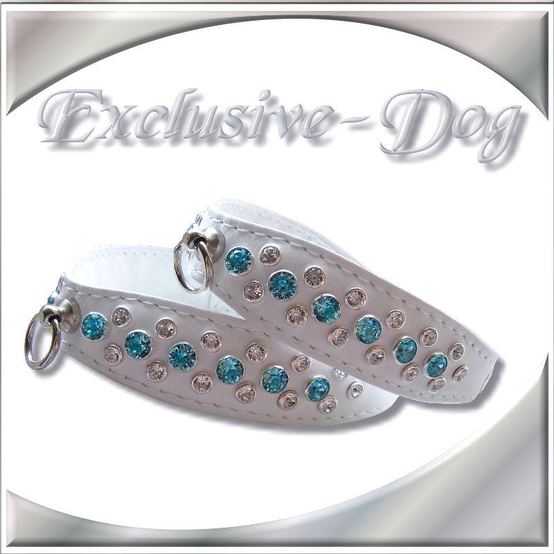 Diese edlen Strasshalsbänder wurden aus weißen Ross Nappaleder