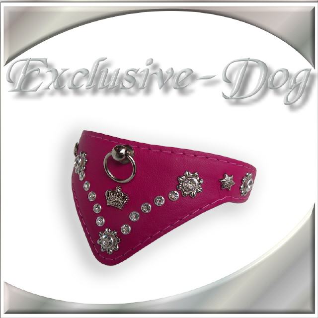 Rosa Pinkes Lederhalsband XS Hundehalsband Skull