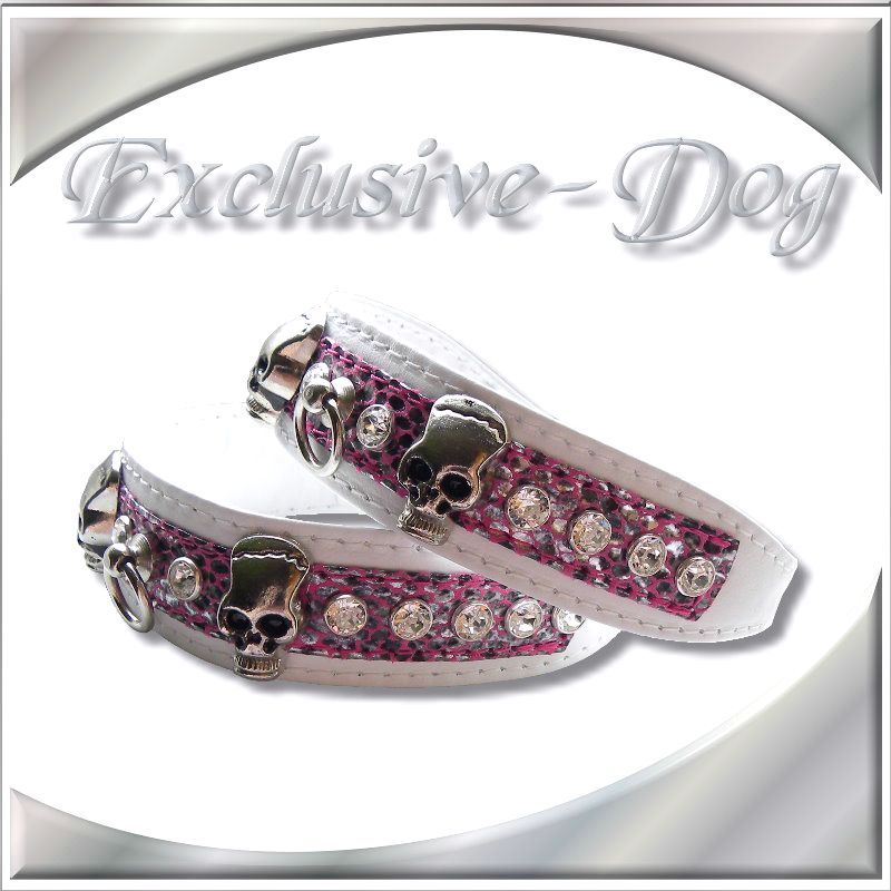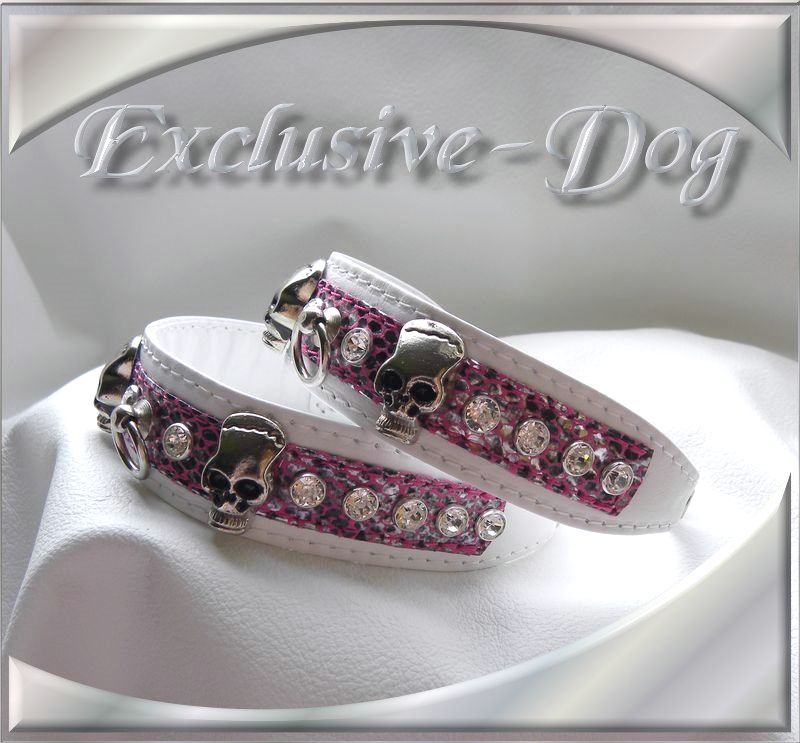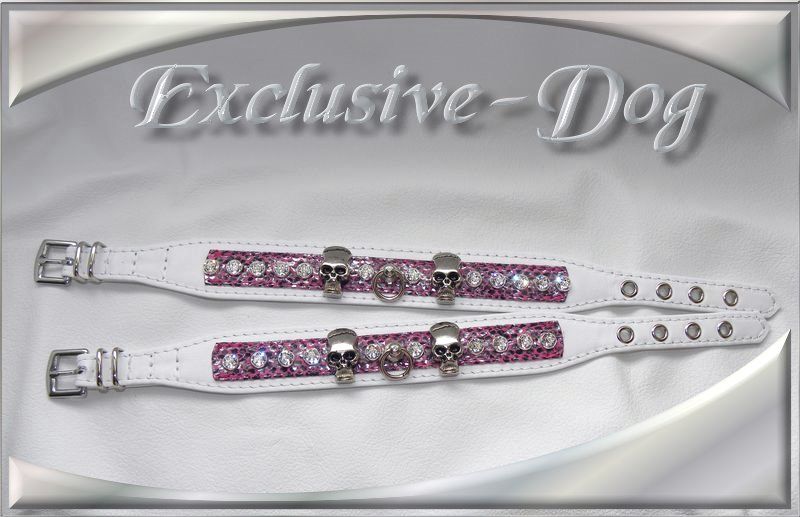 Rockabilly Strasshalsband Chihuahua Yorkshire-Terrier Halsband mit SWAROVSKI ELEMENTS Totenköpfen Skull