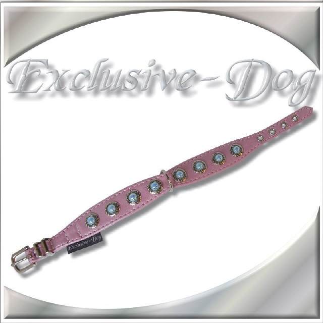 Rosa Hundehalsband Lederhalsband EXCLUSIVE-DOG
