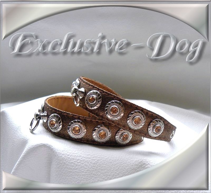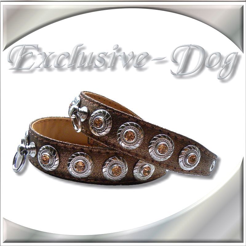 Dieses Luxus Strasshalsband wurde aus Nappaleder in bronze metallic gefertigt,