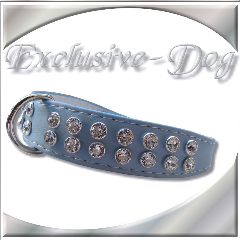 Dieses XS Strass Halsband wurden aus blauen Nappaleder hergestellt,