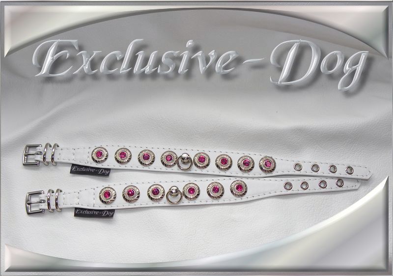 Diese kleinen Strass-Halsbänder wurden aus weißen Ross-Nappaleder