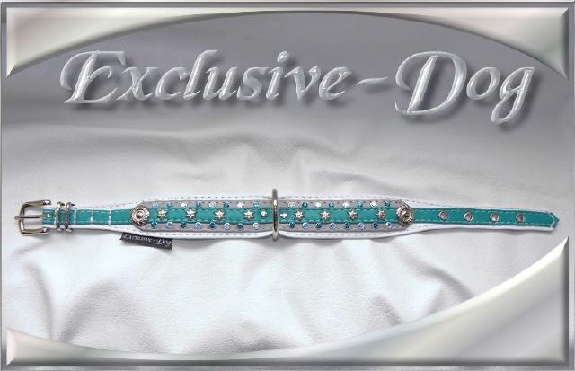 Dieses Strasshalsband wurde aus weiß /grau / türkisgrünen Rossnappaleder hergestellt,