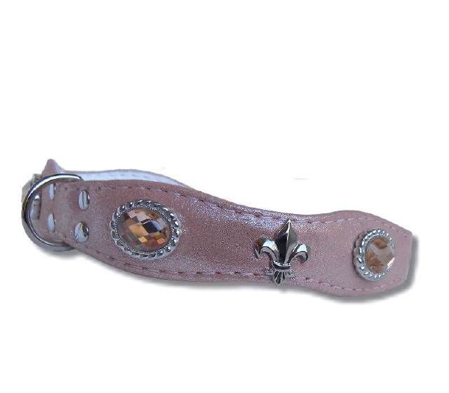 Rosa-Apricot Hundehalsband Lederhalsband Strass
