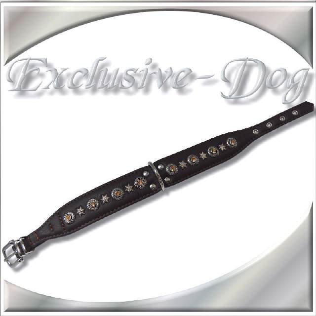 Lederhalsband braunes Hundehalsband mit SWAROVSKI ELEMENTS für z.b. Mops, Shelti