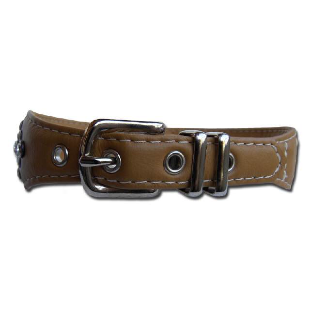 Lederhalsband mit Strass - edles Hundehalsband für z.b. Boston Terrier, kleiner Mops 44cm.