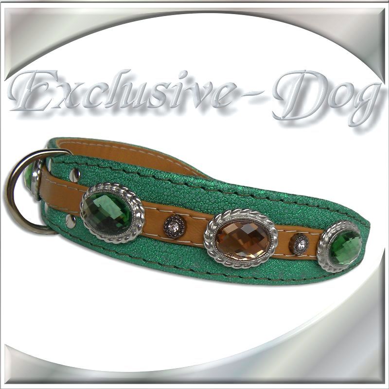 Exclusive-Dog Hundehalsband Lederhalsband, grünes Strasshalsband für .z.b. Mops-Cocker Spaniel