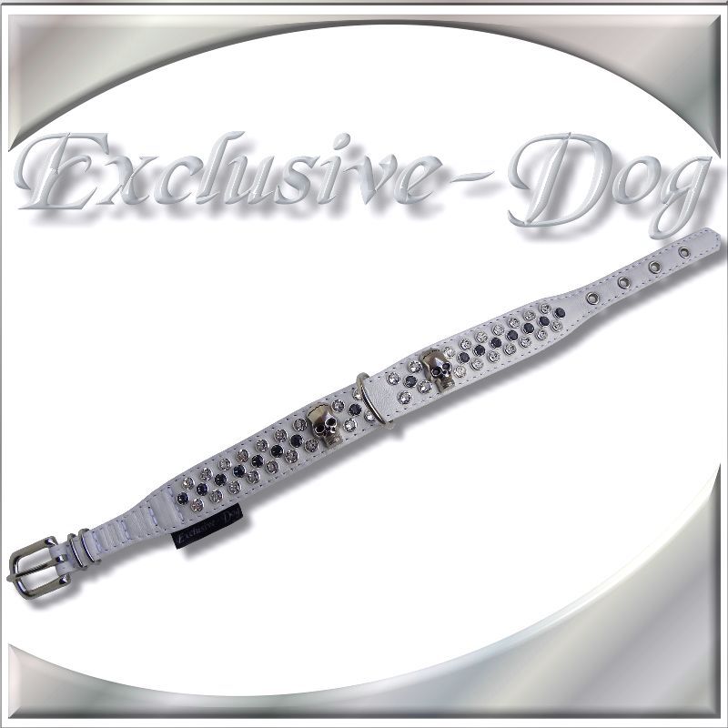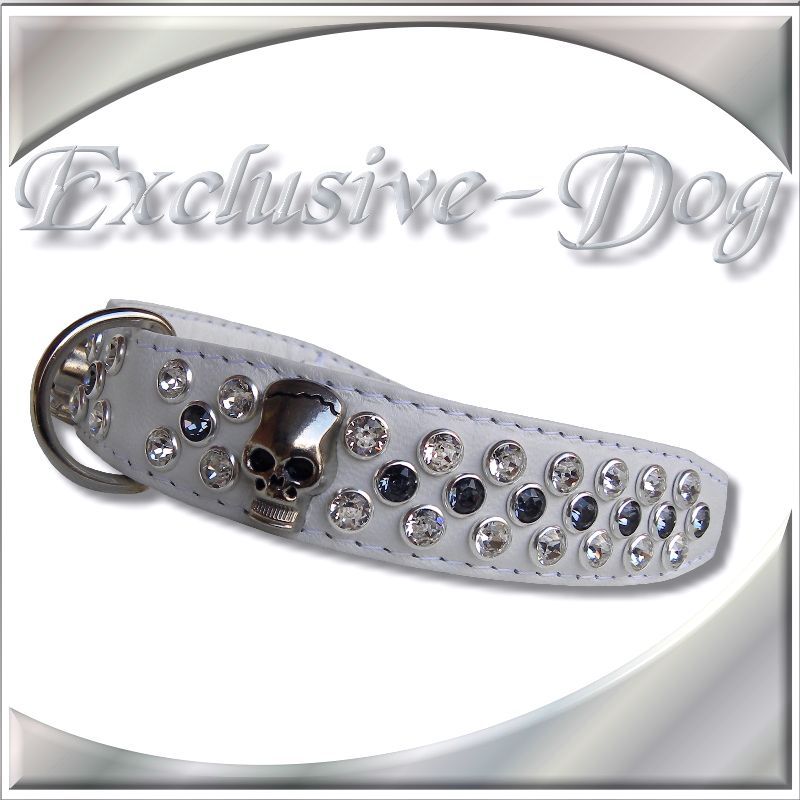 Skull-Totenkopf Hundehalsband Lederhalsband mit SWAROVSKI ELEMENTS für z.b. Jack-Russel / West Highland Terrier
