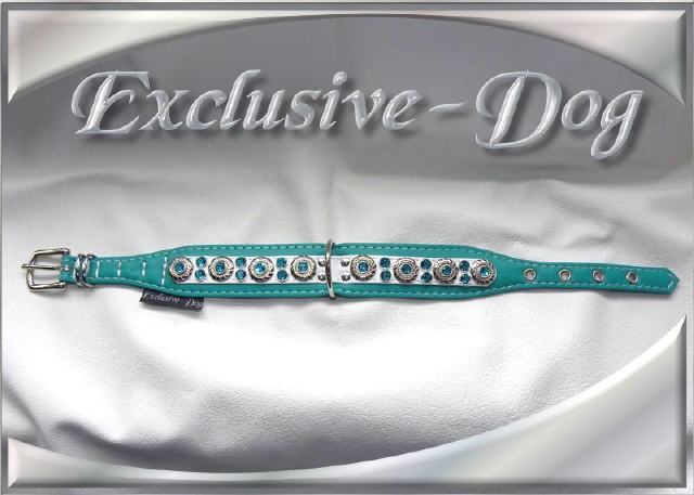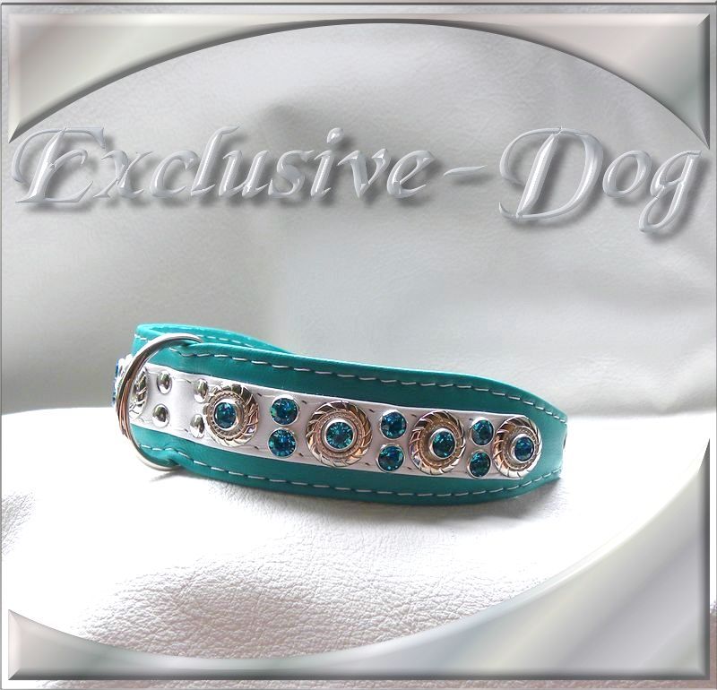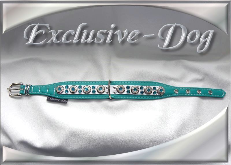 Dieses Strasshalsband wurde aus weiß /türkisgrünen Rossnappaleder hergestellt,