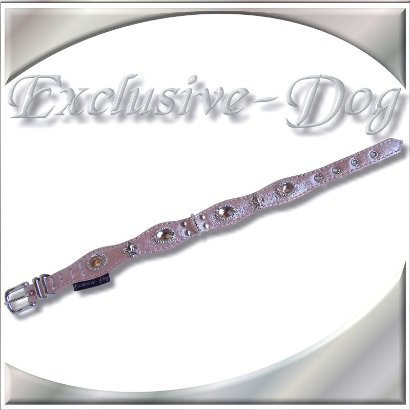 Rosa-Apricot farbenes Strasshalsband Hundehalsband Leder für z.b. kleinen Mops, Jack-Russel, Westy