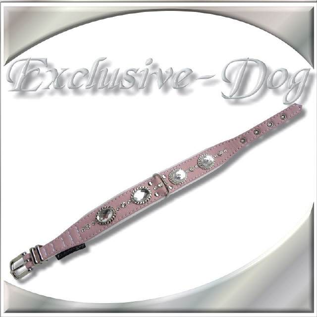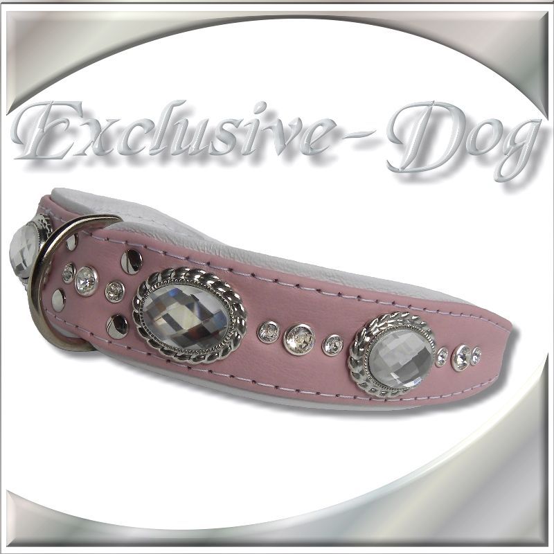 Rosa Hundehalsband Strasshalsband Lederhalsband mit SWAROVSKI ELEMENTS Luxus Hunde für z.B. Cocker Spaniel, Mops, Westy