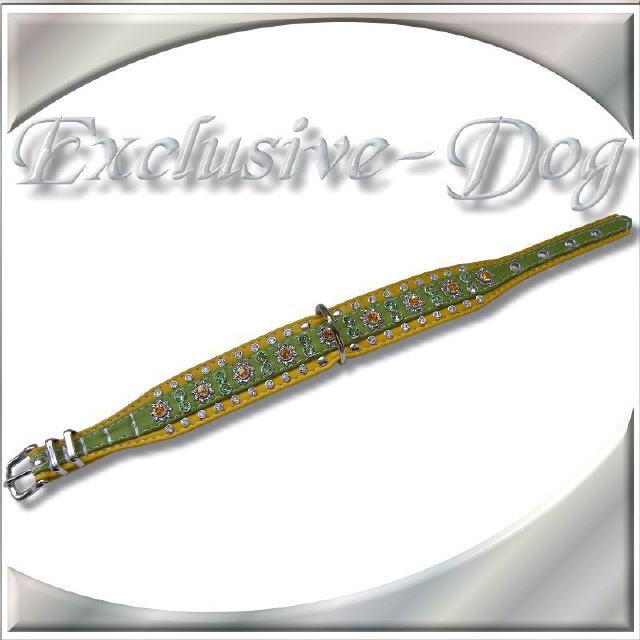 Grün-gelbes Strasshalsband Hundehalsband mit SWAROVSKI ELEMENTS für z.b. "Jack Russel - Mops - Cocker Spaniel"