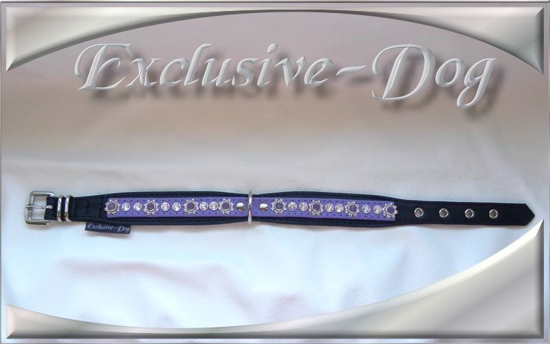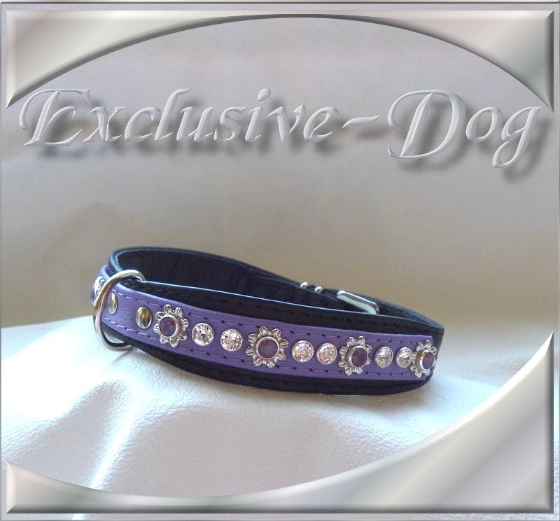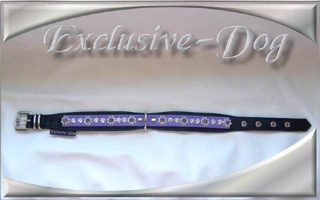 Dieses Strasshalsband wurde aus schwarzen-lila farbenen Rossnappaleder hergestellt,