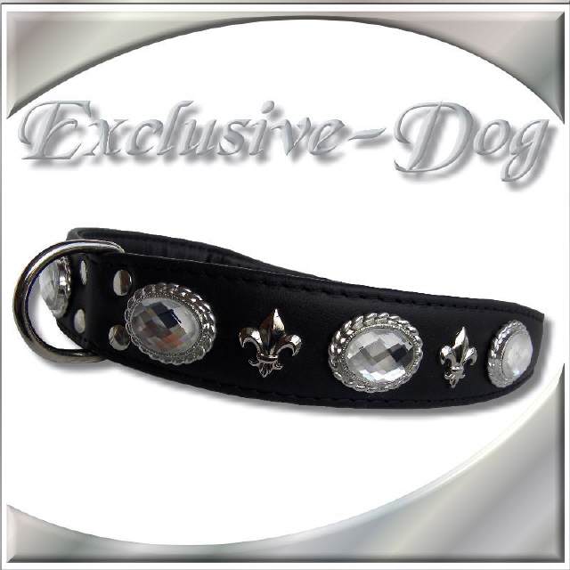 Hundehalsband Lederhalsband mit SWAROVSKI ELEMENTS - Nieten Halsband Hund für z.b. Französische Bullogge-Dobermann-Rhodesian Ridgeback Lederhalsband " SQUER "