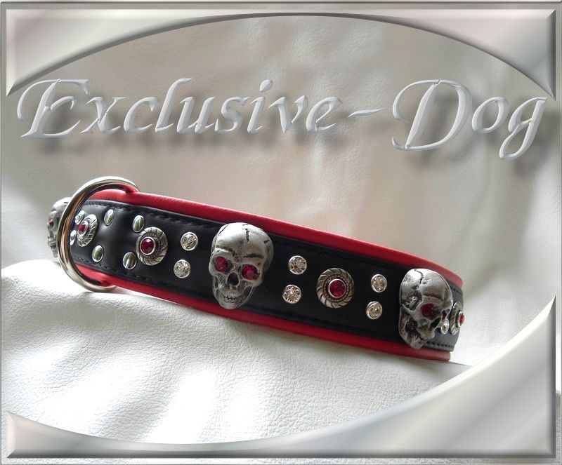 XL Hundehalsband Lederhalsband Skull Strass Unikat