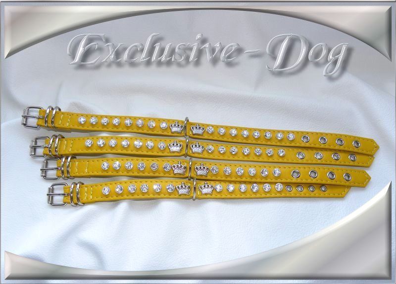gelbe Strasshalsbänder Lederhalsband mini mit SWAROVSKI ELEMENTS Chihuahua Prager Rattler Halsband