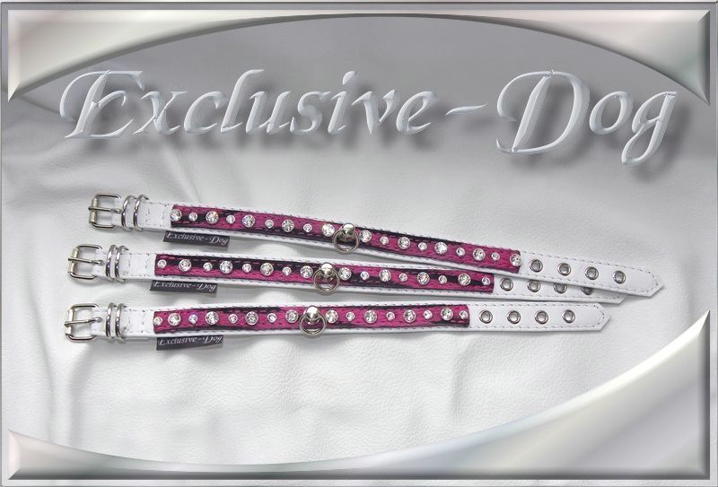 Pink - Rosa Fell Strass Leder Hundehalsband mit SWAROVSKI ELEMENTS Chihuahua Prager Rattler XS Lederhalsband