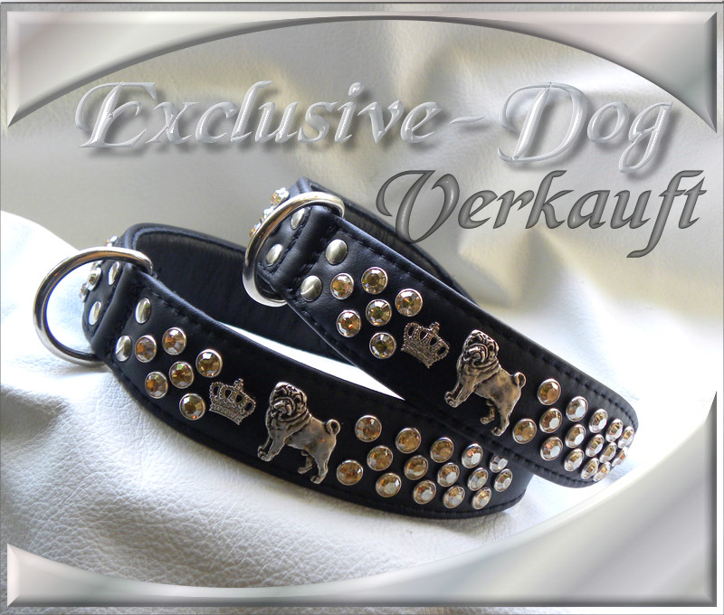 Mops Lederhalsband Strass Luxus Halsband "Shadow"
