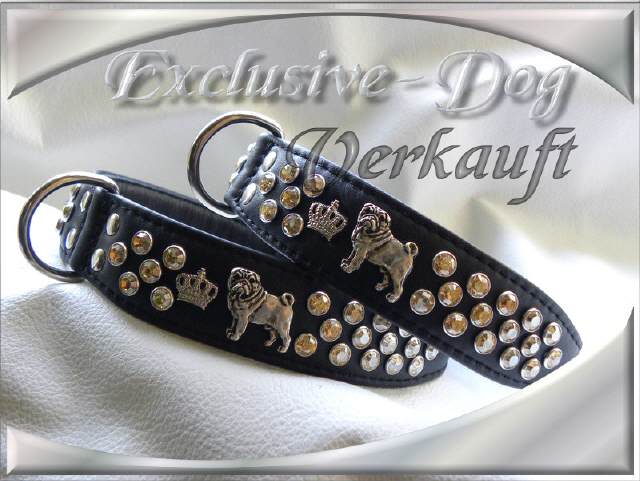 Mops Motiv Leder Strass Halsband " Shadow "