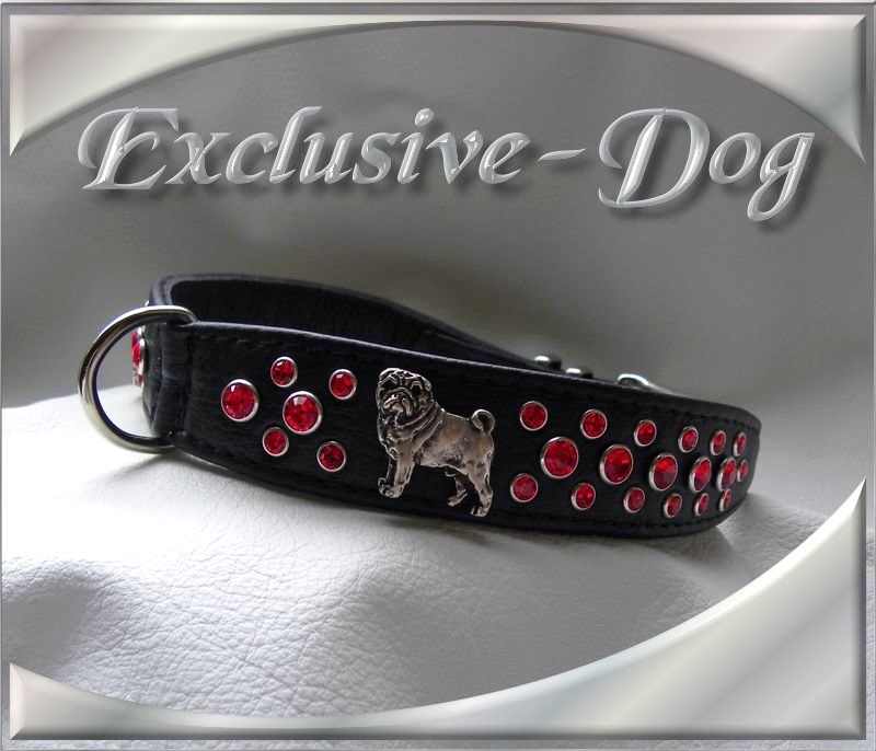 Mopshalsband mit Swarovski Elements verziert " Pug Dog "