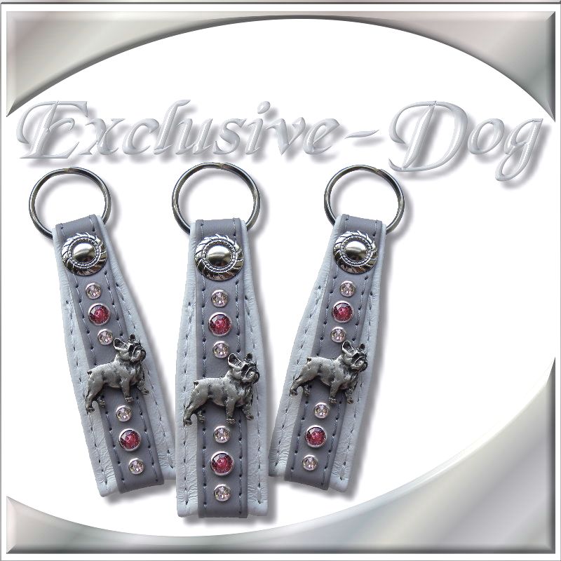 Französische Bulldogge Schlüsselanhänger mit SWAROVSKI ELEMENTS Leder Strass Bully Krone