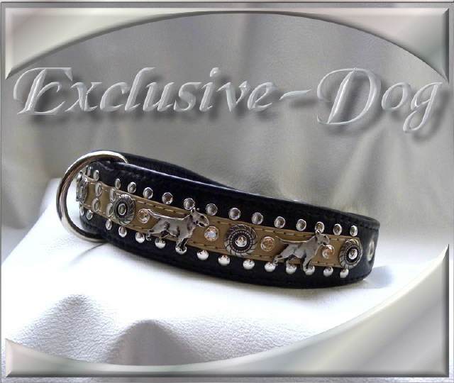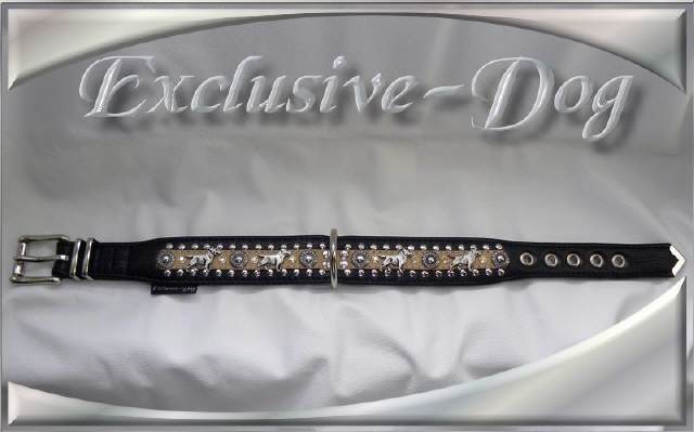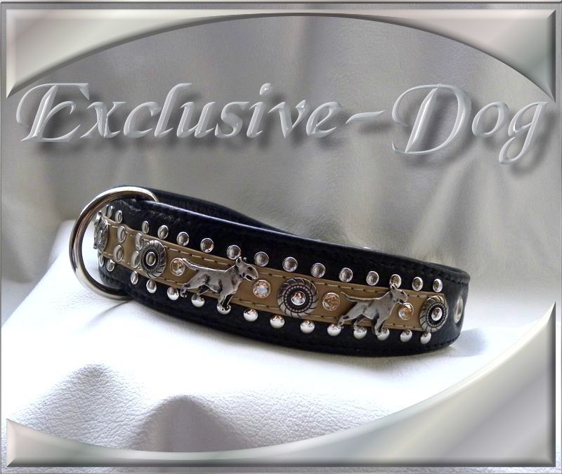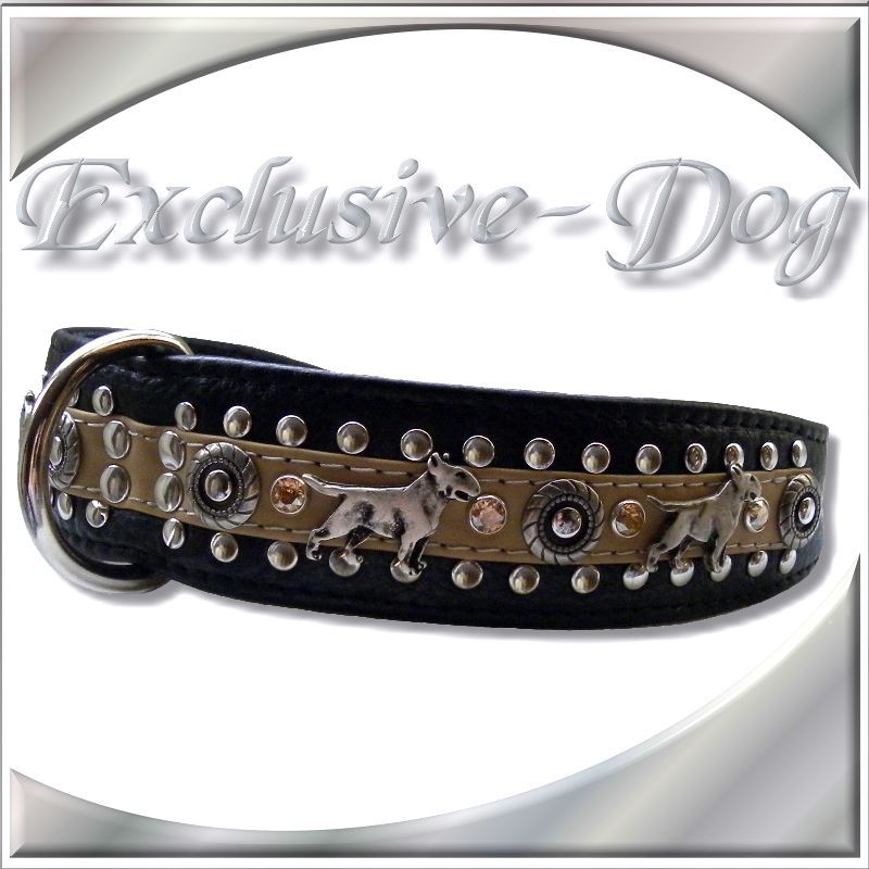 Bullterrier Lederhalsband Hundehalsband Strass Nieten mit SWAROVSKI ELEMENTS für " Bullterrier "