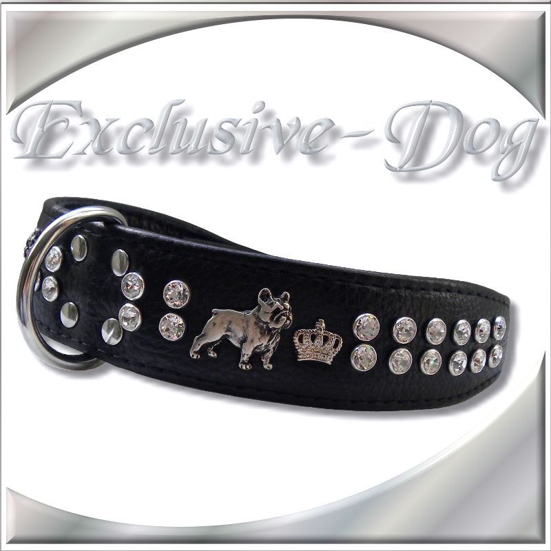 Französische Bulldogge Strass Halsband Lederhalsband mit SWAROVSKI ELEMENTS Hundehalsband Bulldogge
