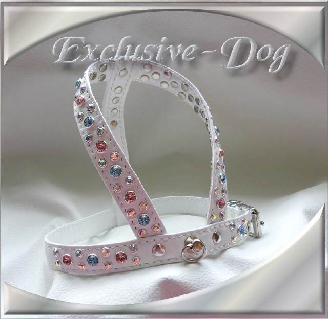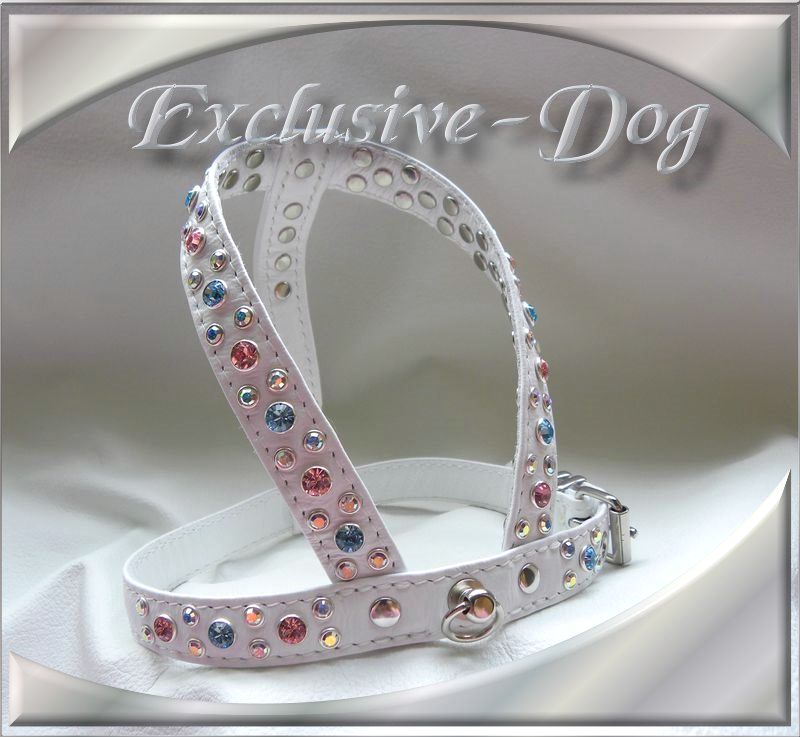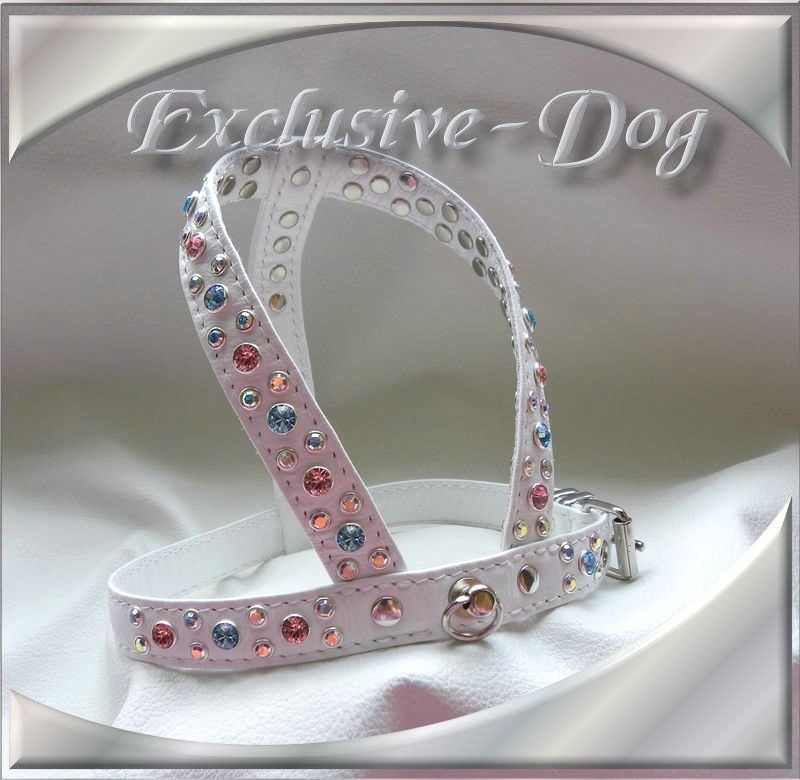 Chihuahua Prager Rattler Geschirr Strass Brustgeschirr " B.Snowlike "mit SWAROVSKI ELEMENTS verziert.