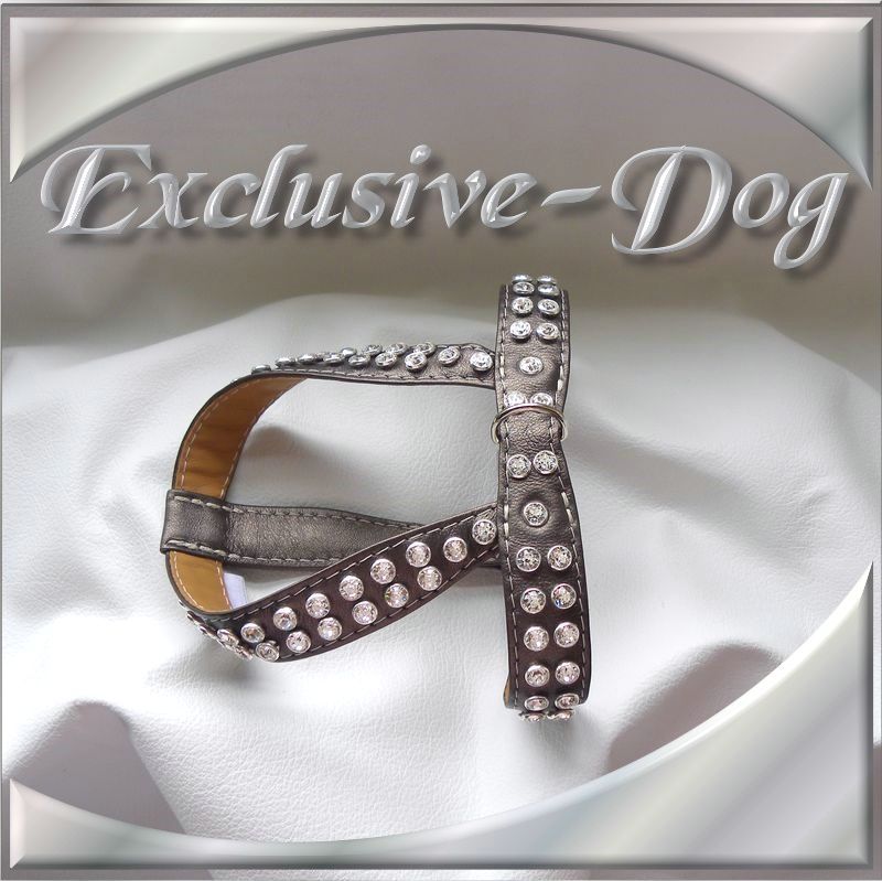 Brustgeschirr Strass Geschirr Leder Metallic Bronze mit SWAROVSKI ELEMENTS Chihuahua Yorkshire Terrier XS