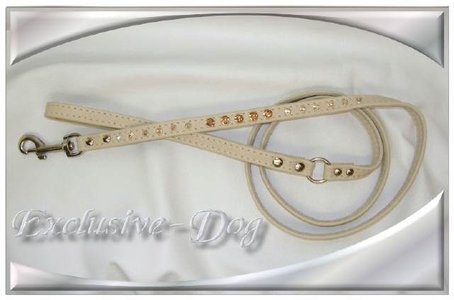 Chihuahua Strass Lederleine mit SWAROVSKI ELEMENTS Prager Rattler mini Leine mit Strass " Debate Leine " Diese Leder Leine wurde aus dunkel beigen Ross-Nappaleder hergestellt