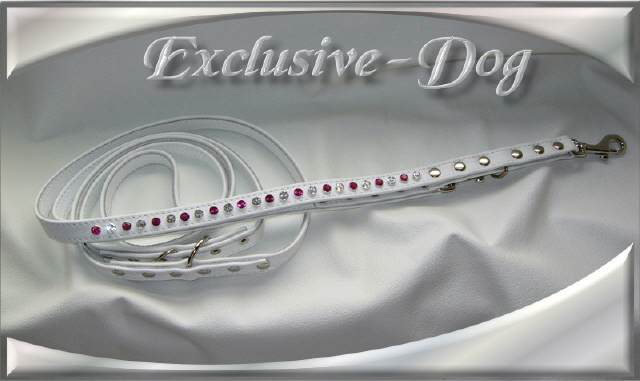 XS pink Strass Lederleine lang Leder Fell mit SWAROVSKI ELEMENTS Prager Rattler-Chihuahua " Lederleine XS L.SKIN "