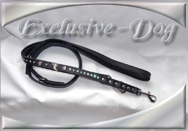 Lederleine LUXUS passend zu dem Halsband " Glory " mit Swarovski Strass verziert