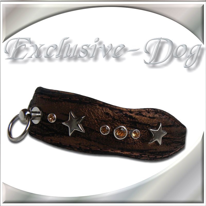 Lederhalsband XS braun/schwarz strukturiertes Strasshalsband DOG-COLLAR für z.b. Chihuahua, Yorkshire-Terrier, Pudel
