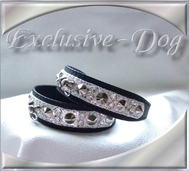 XS Chihuahua Yorkshire-Terrier Strasshalsband Strass Lederhalsband mit SWAROVSKI ELEMENTS silber print Schlangen Design