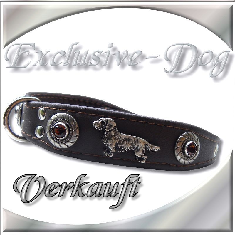 Lederhalsband DACKEL Hundehalsband mit SWAROVSKI ELEMENTS Luxus-Hund-Rauhaardackel Nieten