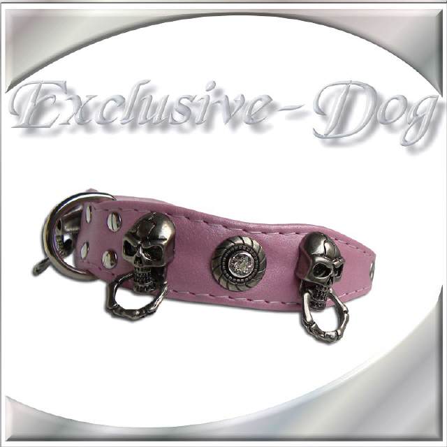 Rosa Pinkes Lederhalsband XS Hundehalsband Skull
