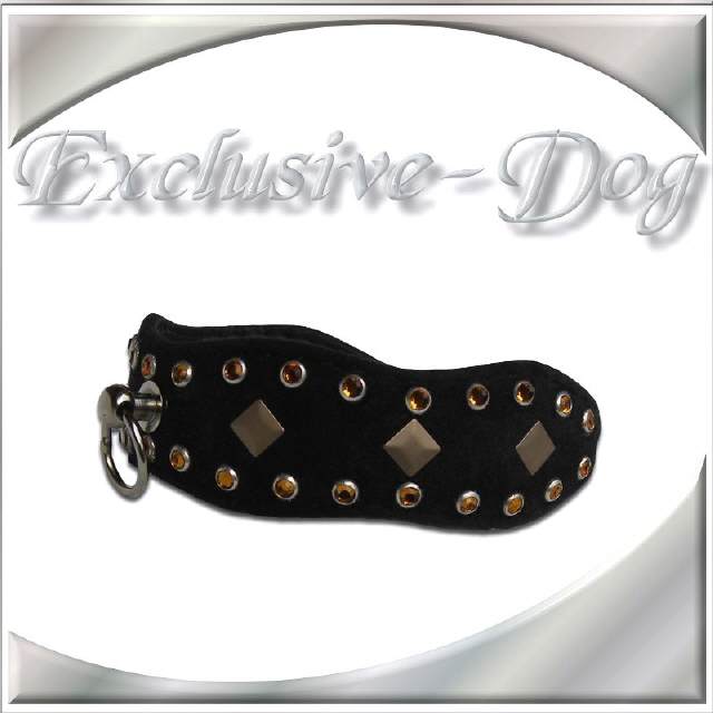 Hundehalsband schwarz XS mit Strass, exklusives Luxus Lederhalsband für kleine Hunde. " Hundehalsband WATCH "