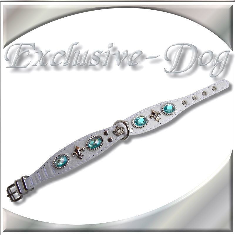 Dieses kleine XS Strasshalsband wurde aus weißem Ross- Nappaleder hergestellt,