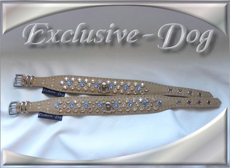 Diese XS Strasshalsbänder wurden aus beige Ross- Nappaleder hergestellt,