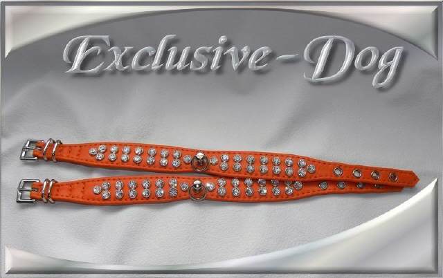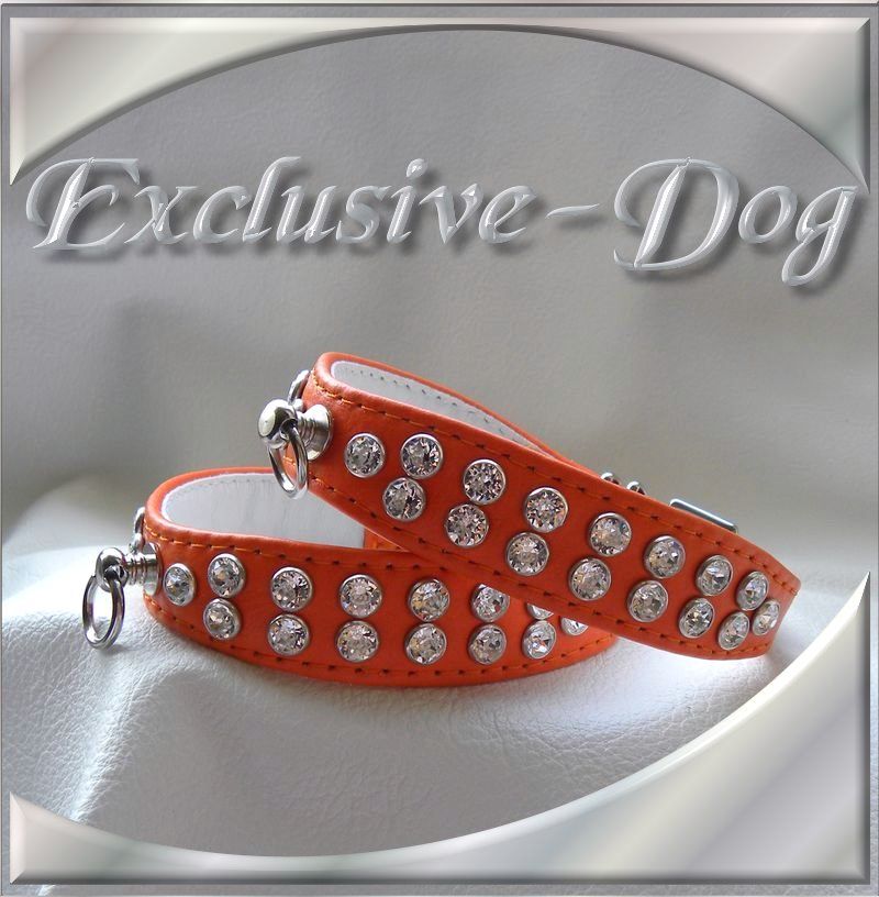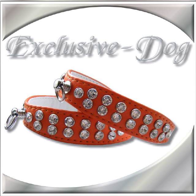 Diese Strasshalsbänder wurden aus orange farbenen weichen Nappaleder hergestellt,