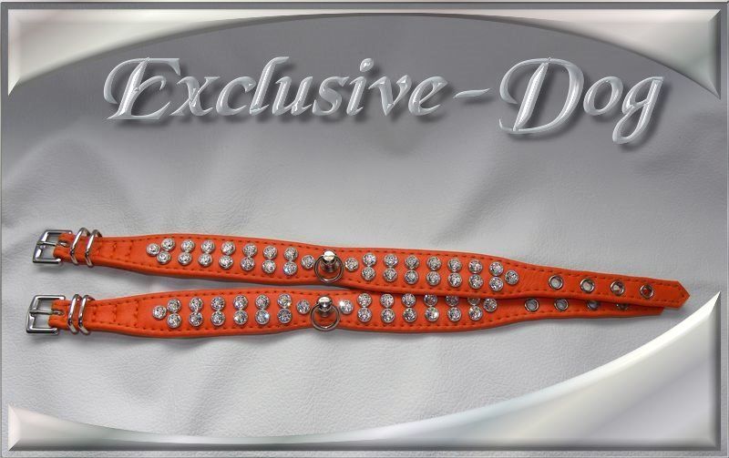 Orange farbenes Hundehalsband Strass Leder Halsband mit SWAROVSKI ELEMENTS Chihuahua Yorkshire-Terrier Prager Rattler